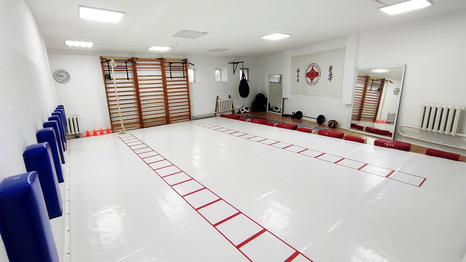 Новое комфортное додзе для тренировок карате на первом этаже.