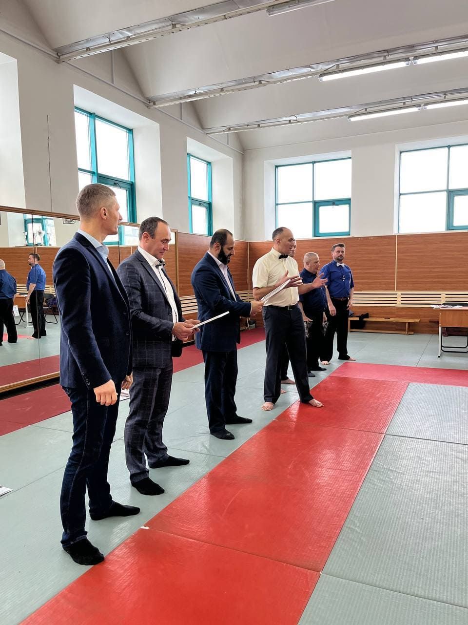 - председателя Всероссийской Коллегии Федерации Киокушин России Попова Валерия, сенсей 3 Дан; и председателя Всероссийской Коллегии Федерации Киокушин России, Заслуженного тренера России, Гадукяна Карена, Шихан 5 Дан;