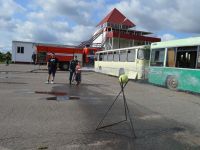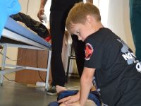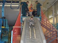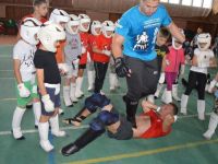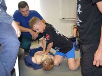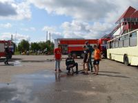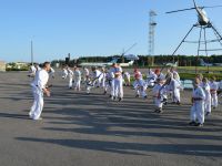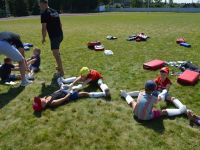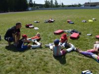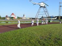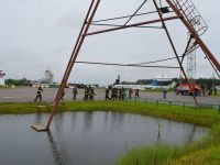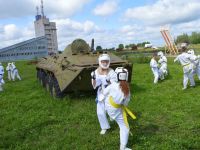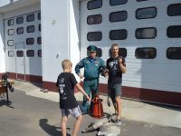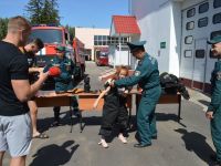 После обеда, в 14.00 было традиционное мероприятие с сотрудниками филиала ИППК Университета гражданской защиты МЧС. На каждый день была запланирована определенная тематика. Сотрудники университета знакомили ребят с автопарком МЧС и техническим арсеналом при спасательных работах. Были проведены мастер классы и обучение по оказанию первой помощи и искусственному дыханию. С использованием специального тренажера — часть настоящего самолета Ту 154, были отработаны действия при чрезвычайных ситуациях на воздушных судах и эвакуация из них. Наши каратисты узнали мощь брандсройта и своими руками тушили огонь с помощью огнетушителей. Посещение музея, знакомство со всей территорией полигона, наблюдение за работой альпинистов, и многое другое.